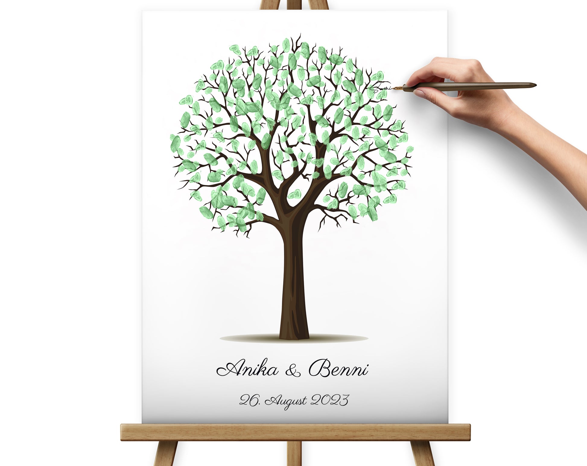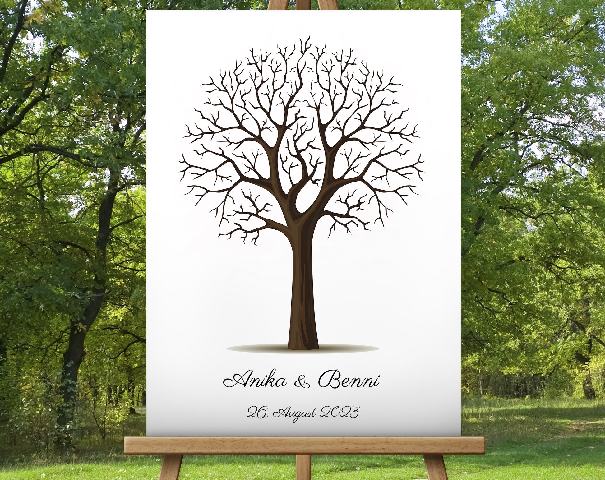 Hochzeitsgeschenk, Gästebuch, Gästebaum - Wunschbaum - Perfekte Alternative zu traditionellen Papieralben. Ein gemeinsames Hochzeitsspiel, bei dem die Gäste gemeinsam die Blätter des Baumes mit ihrem Fingerabdruck und ihrer Unterschrift gestalten.