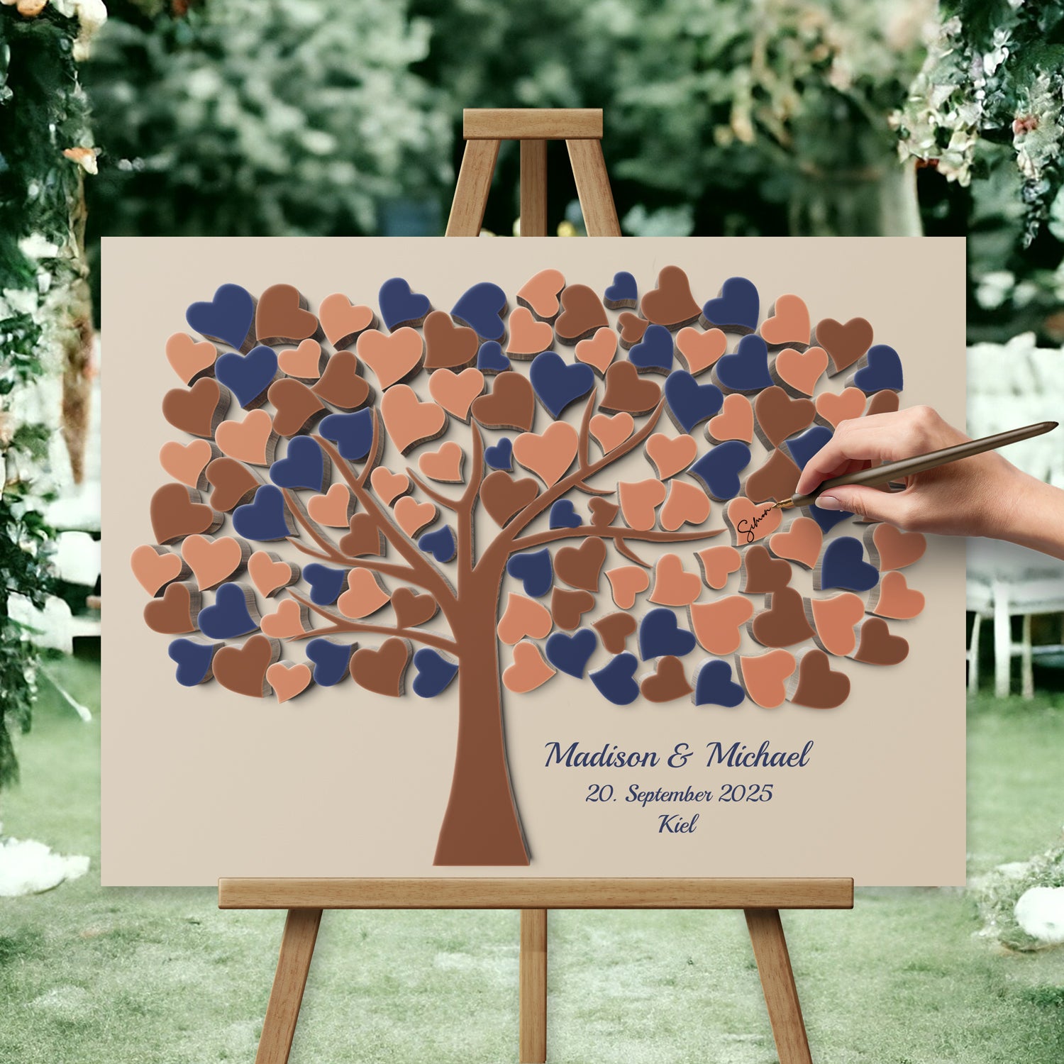 Der Hochzeitsbaum / Gästebuch ist nicht nur eins der schönsten Hochzeitsspiele und ein Klassiker der Hochzeitsgästebücher - er ist auch eins der individuellsten Geschenke zur Hochzeit. Jeder Gast hinterlässt seine Unterschrift auf dem Baum.