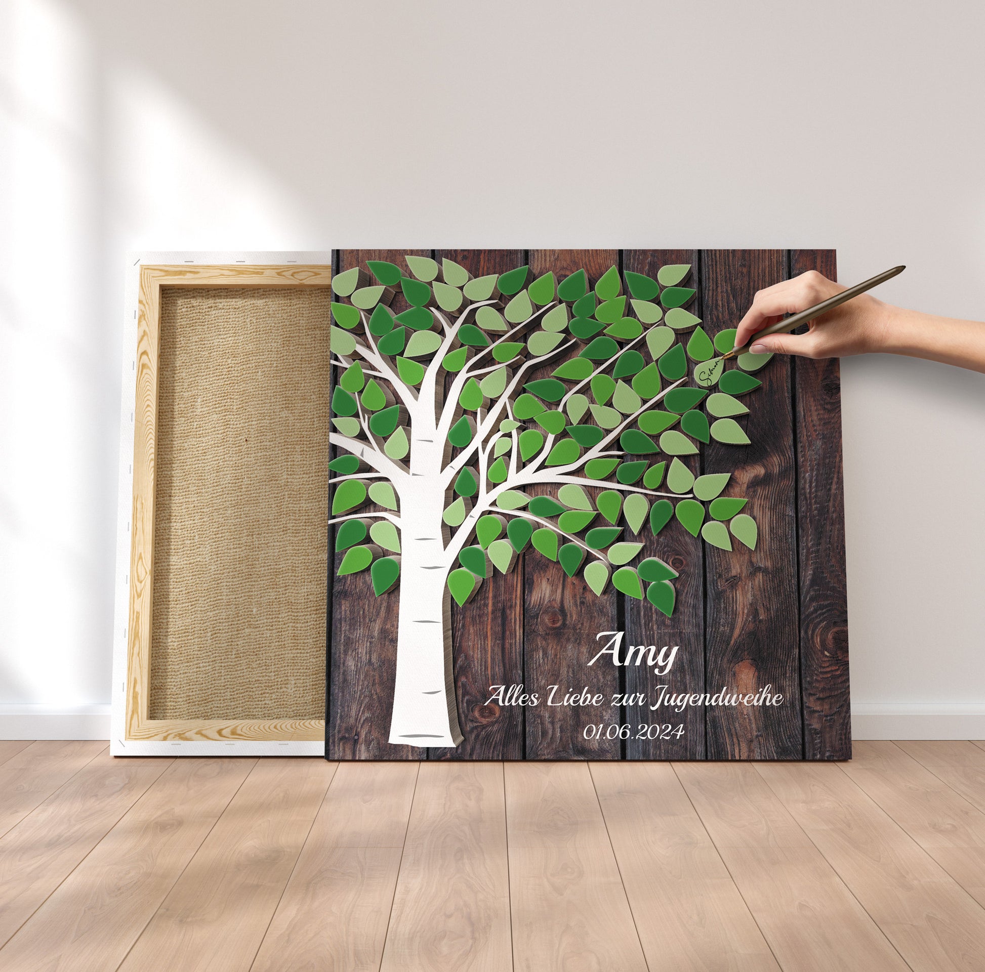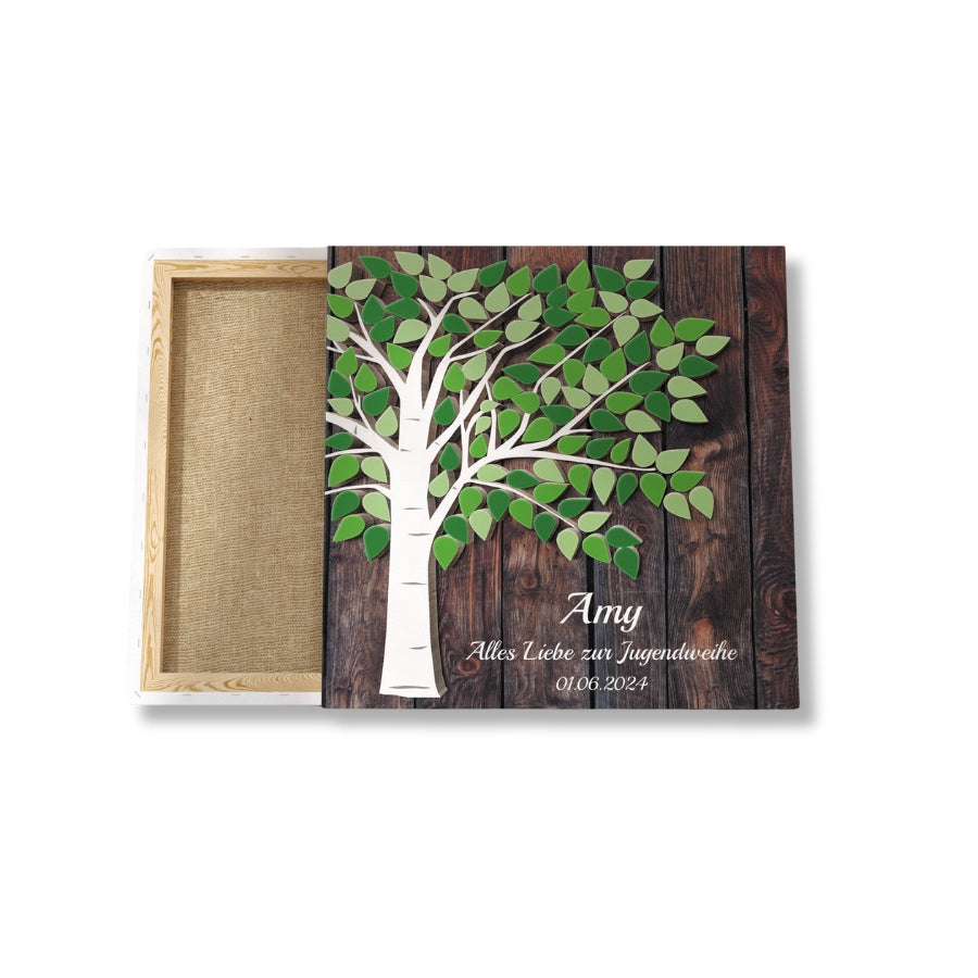 Tolles Geschenk für jeden Anlässe - Jugendweihe, Geburtstag oder Taufe ist dieses Leinwand-Gästebuch mit einem einzigartigen Gästebaum.